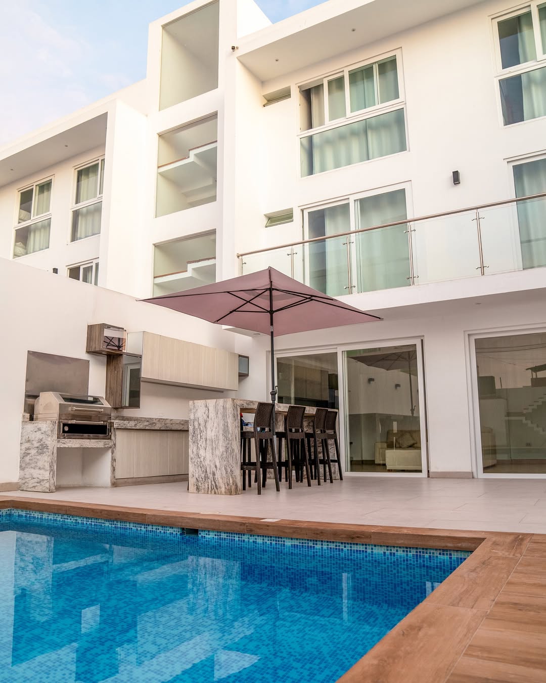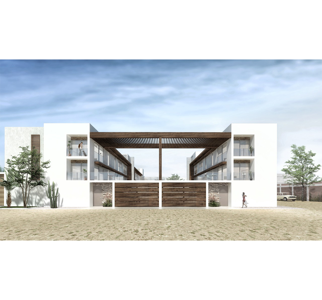 Proyecto de tres casas de playa para la marca Casa de Austin, dedicada al alquiler vacacional. El reto fue crear un diseño funcional y atractivo que maximizara la capacidad de alojamiento en un terreno compacto sin perder confort ni privacidad. El conjunto se organiza en tres volúmenes: dos casas gemelas y una mayor con piscina amplia. Un vacío central articula los espacios, permitiendo que funcionen como unidades independientes o como una sola vivienda integrada.