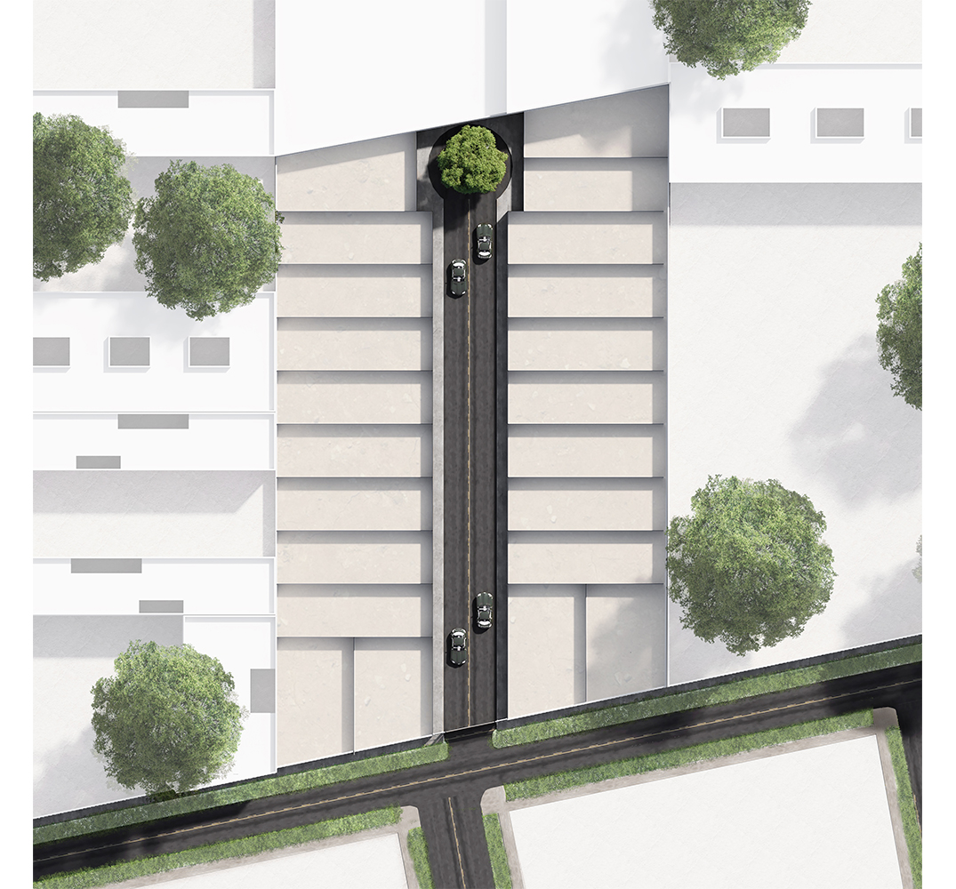 La propuesta urbana busca maximizar la funcionalidad del trazado vial y garantizar condiciones óptimas de habitabilidad. La vía, con dos carriles de 3.00 m y veredas de 1.20 m, brinda seguridad y comodidad superiores a lo normado. El remate en plazoleta de giro facilita la maniobra vehicular y genera un espacio de encuentro vecinal. El encargo abarcó todo el proceso técnico y administrativo, desde el diseño hasta la inscripción registral y puesta en venta del proyecto.
